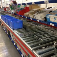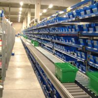 In "goods to man" picking, the goods are provided dynamically and automatically from an adjacent small parts warehouse. The corresponding RBS conveyor technology enables the goods to be transported directly to the order picker, who removes the desired goods from a container or tray which is then automatically transported back to its storage location. This picking procedure reduces travel times and achieves a relatively high picking performance with low susceptibility to errors. The ergonomic workplace design and the low-noise operation of the conveyor elements likewise improve the quality of work.